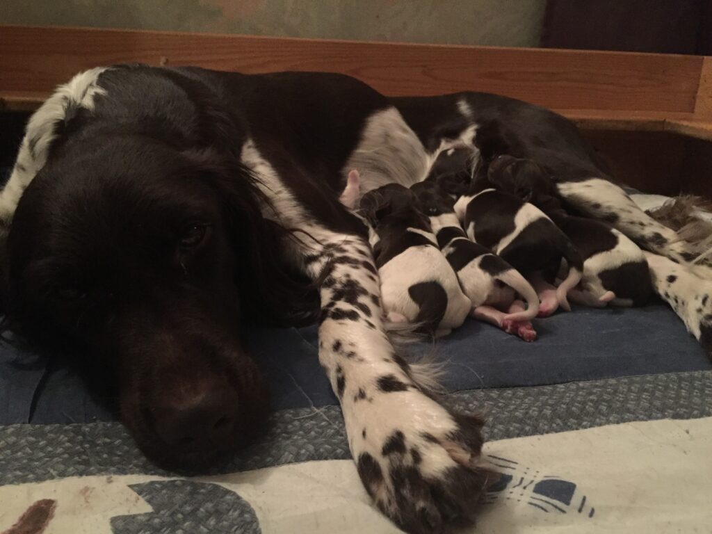 Vi har även ofta Tesslat mor ”Choco” hos oss då hon ofta vill åka med hem till oss, när vi träffar hennes ägare (Ingemar Johansson som driver Skrämmens Kennel). Choco (SE35264/2015) är även hon en mycket driven tik, med enorm jaktlust och vilja, men en hel del ”Will-To-Please”. Hon har ett stort sök, med hög fart och är ofta den som hittar flest fåglar eller rådjur under en jaktdag.