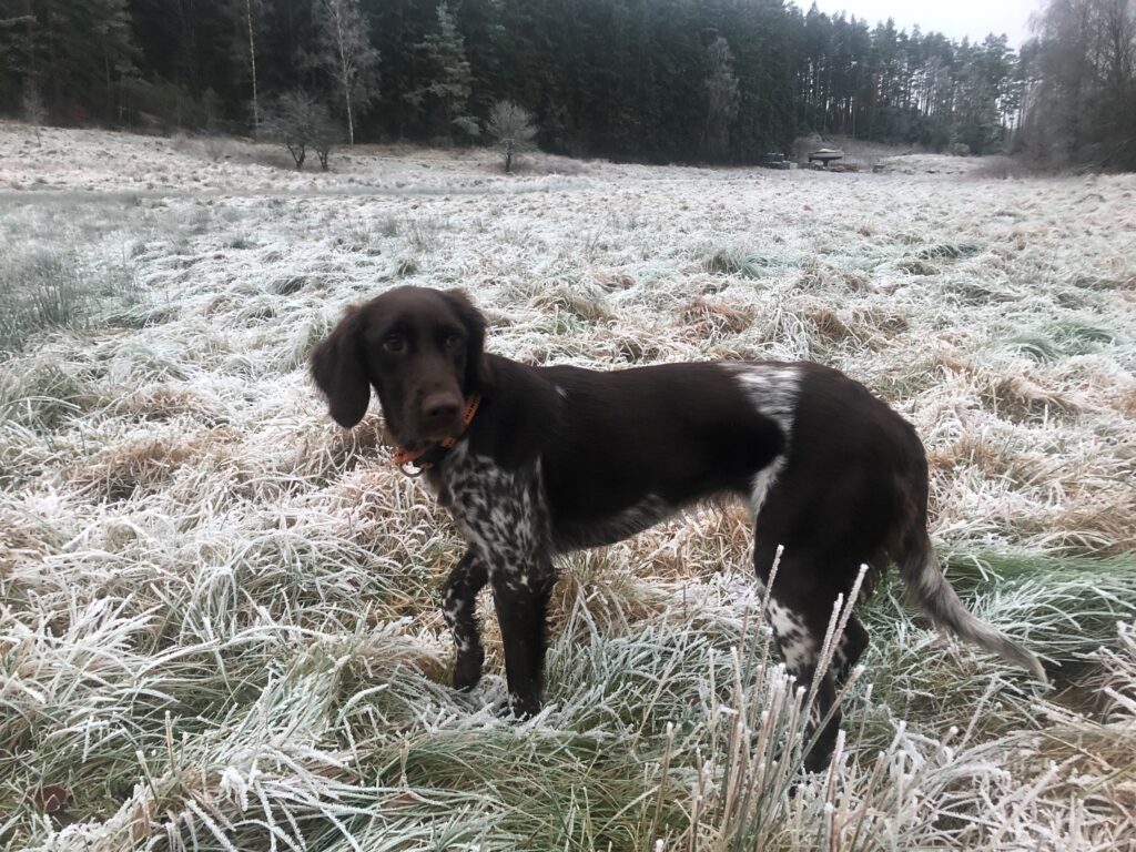 I flocken har vi primärt vår egna Skrämmens F-Tessla (SE19403/2018) som är en mycket driven och snabb tik. Det går fort när hon sätter av och hon har ett stort sök. Ofta är det hon som hittar vilt när vi jagar med andra hundar eller går prov, och hon är aldrig ovillig till att jobba. Hon har en stor vilja att jobba och jaga med sin förare, och en stor portion ”Will-To-Please”. Största utmaningen är att få lydnaden att sitta tillräckligt hårt för att kunna så henne att inte gå efter en fågel i uppflog, eller stanna henne om hon driver fel djur. Så stort fokus läggs vid lydnadsträning och stabiltet vid fågelsituationer.